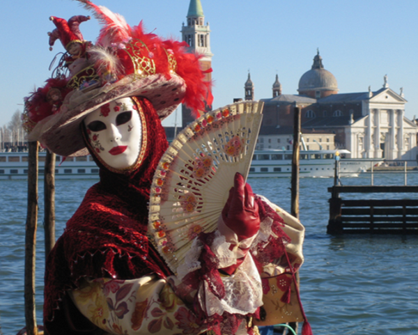 A propósito, os foliões de Veneza, diferentemente dos nossos e da maioria dos outros mundo afora, pouco se movimentam: fantasiados, ficam parados, feito estátuas, pelas ruas, para que os passantes admirem-lhes as fantasias.